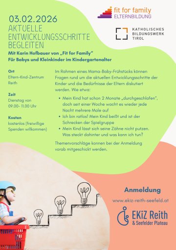 Im Rahmen eines Mama-Baby-Frühstücks werden am 03.02. mit Karin Hofbauer Entwicklungsschritte von Babys und Kleinkindern besprochen.